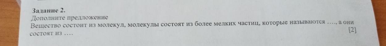 Вещество состоит из молекул, малекулы состоят из более мелких чистиц которые называются..., а они состоят из....