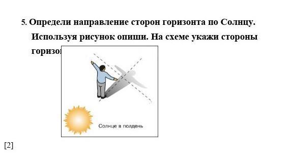 СРОЧНО!!!! 5.Определи направление сторон горизонта по Солнцу. Используя рисунок опиши. На схеме укажи стороны