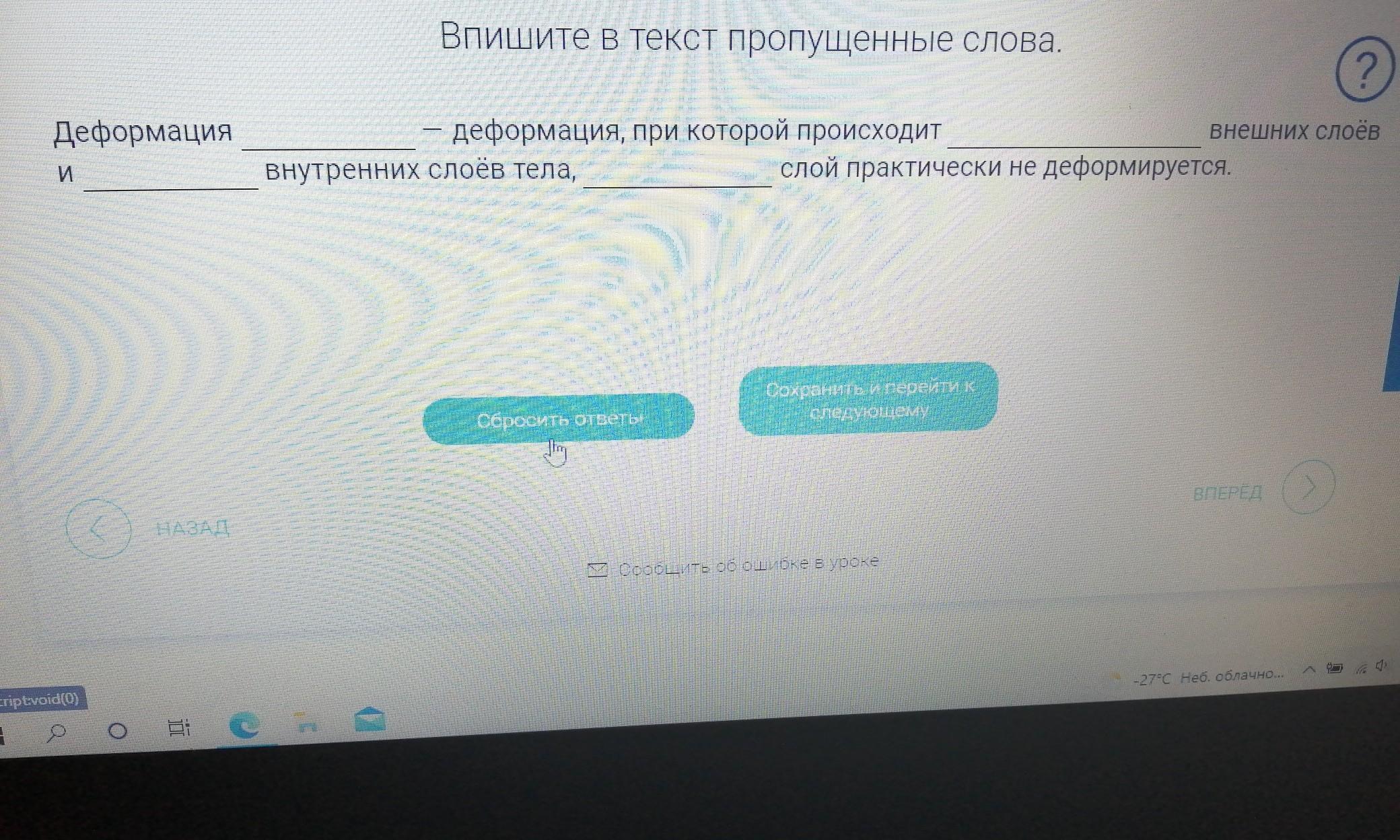 Деформация изгиба - деформация, при которой происходит растяжение внешних слоёв и сжатие внутренних слоёв тела, средний слой практически не деформируется