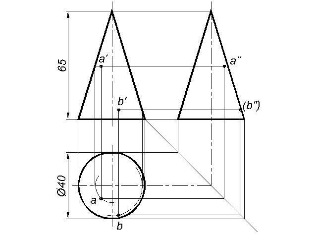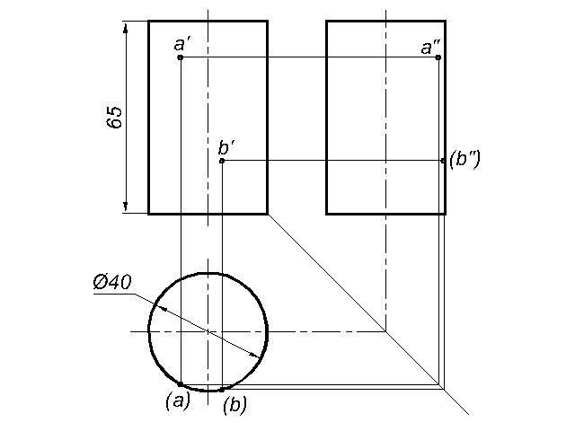 построить комплексные чертежи и изометрию геометрических тел с точками на поверхности.