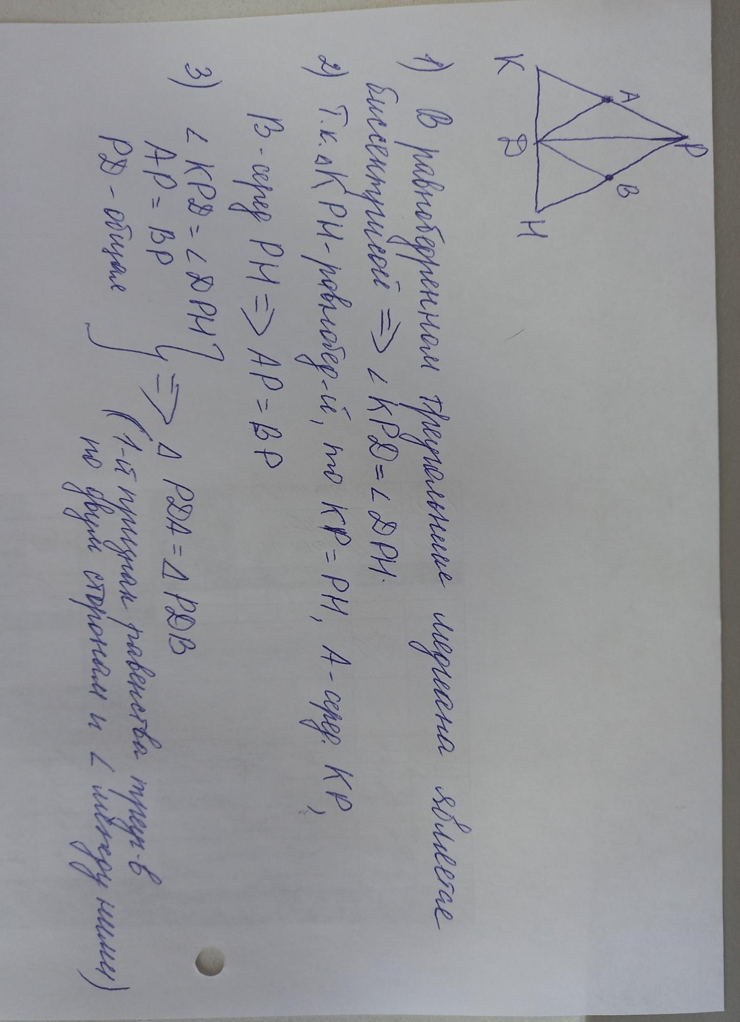 В равнобедренном треугольнике КРН с основанием КН проведена медиана РД Точка А середина стороны РК Точка В середина стороны РН . докажите равенство треугольников РДА и РДВ.