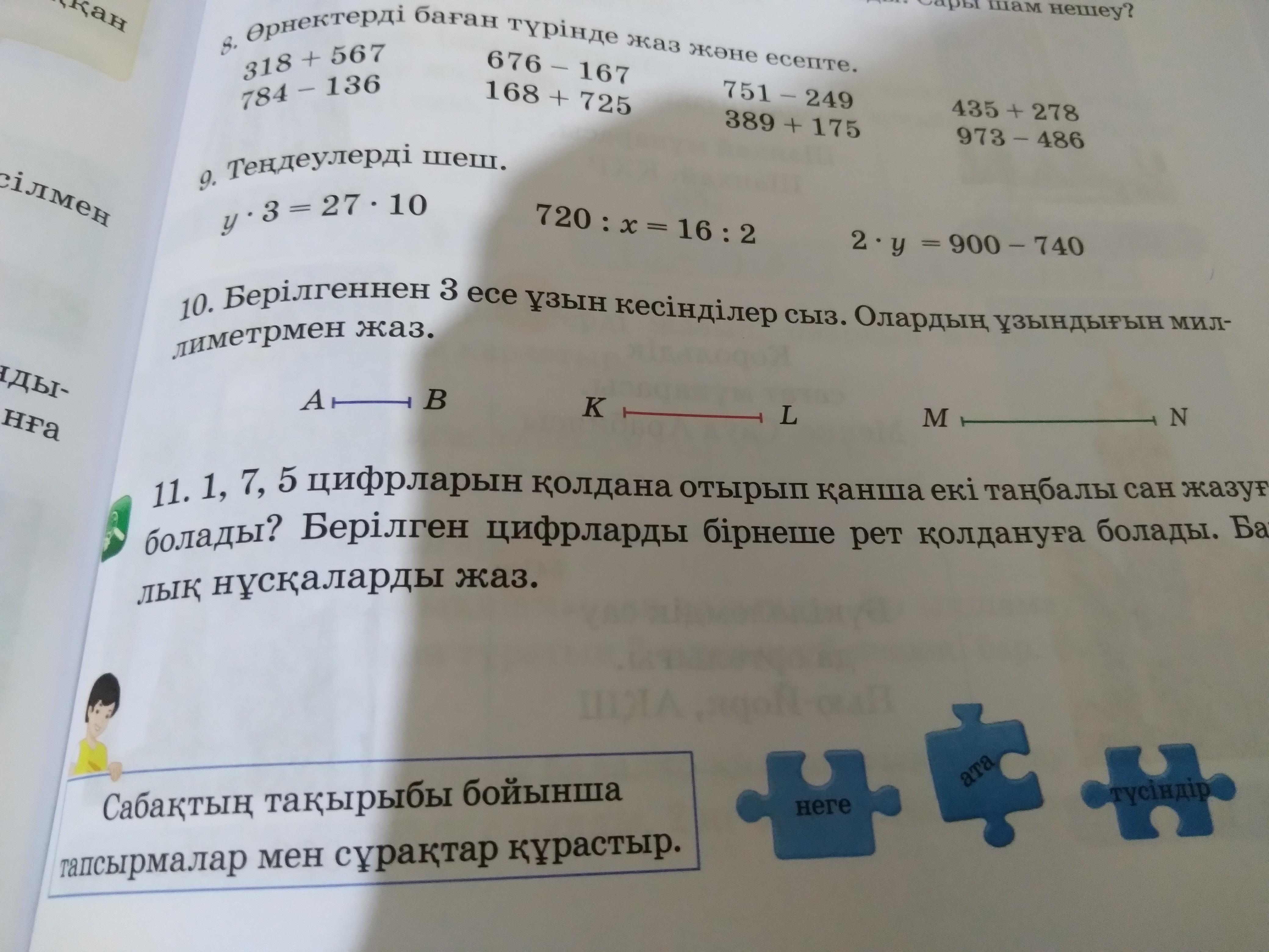 10. Берілген 3 есе ұзын кесінділер сыз. Олардың ұзындығын милиметрмен жаз.