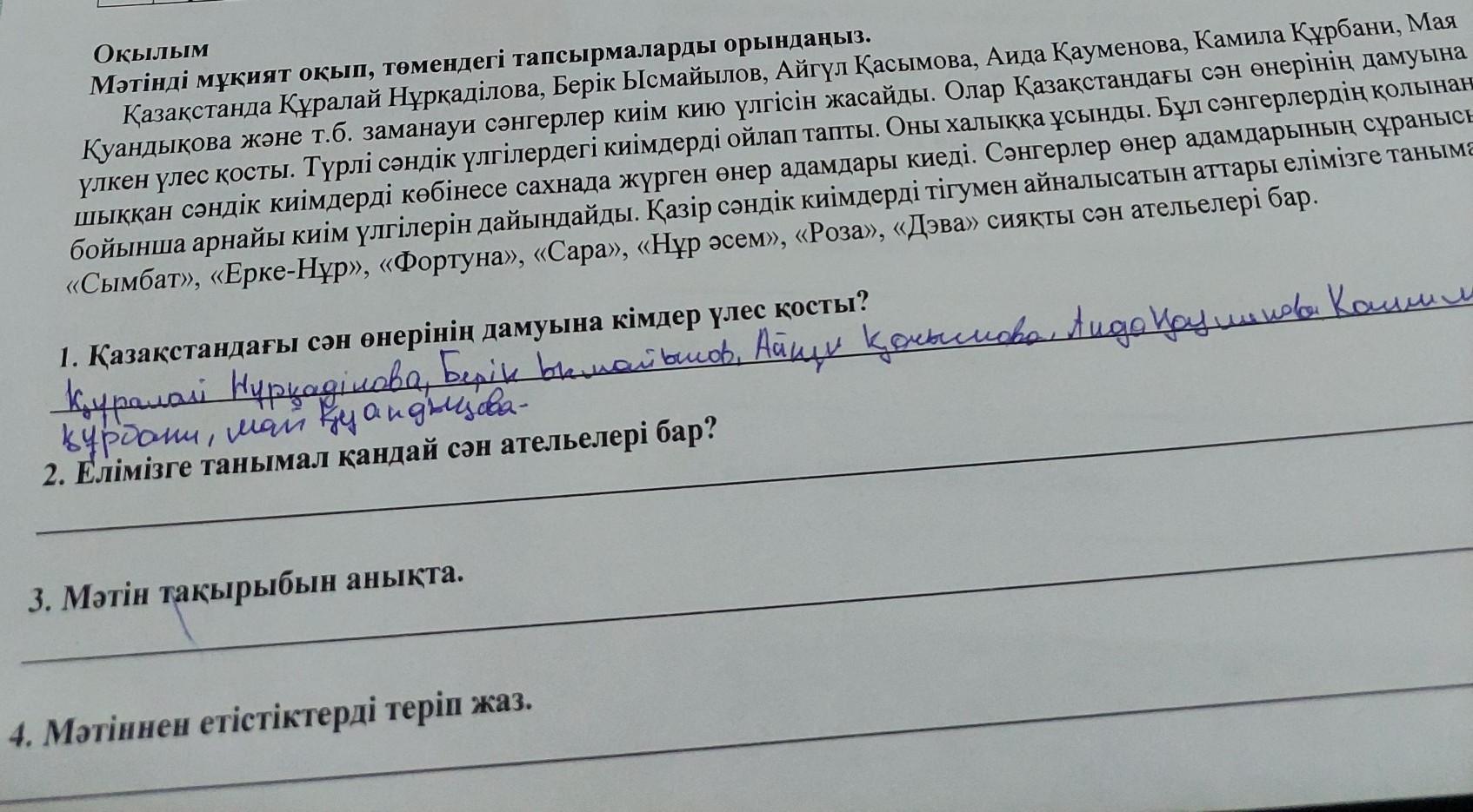 3) Мәтіннің тақырыбы Қазақстанның сән өнері туралы мәлімет беру