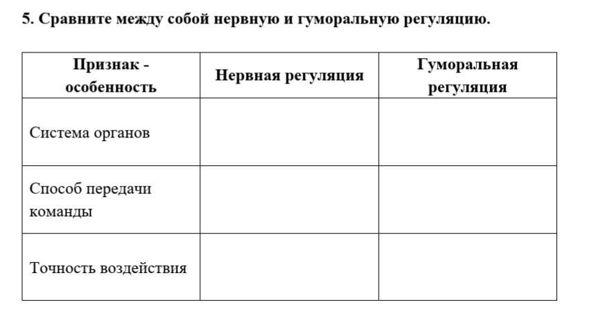 Сравните между собой нервную и гуморальную регуляцию.