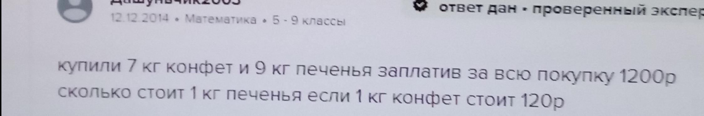 ОТВЕТ: 1 кг Печенья стоит 40 Рублей