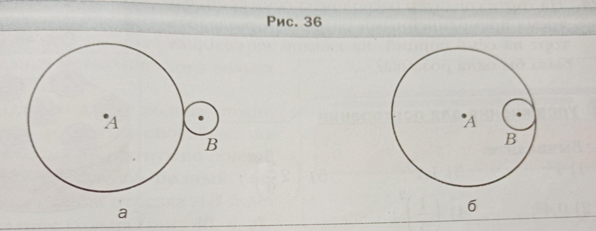 715. Радиус окружности с центром A 9 см, а радиус окружност с центром B – 2 см. Найдите расстояние между центрами этих окрул ностей (рис. 36).