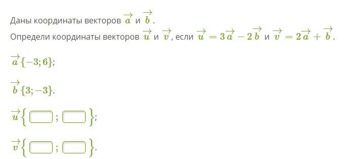 Определи координаты векторов u→ и v→, если u→=3a→−2b→ и v→=2a→+b→.