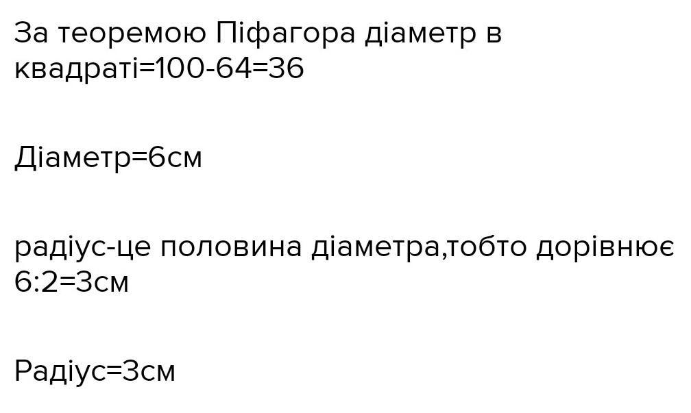 Діагональ осьового перерізу циліндра дорівнює 10 см а висота 8 см.