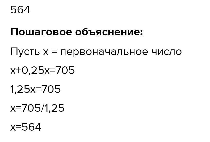 Витя задумал число если это число увеличить на четверть самого числа то получится 705. Найдите исходное число.