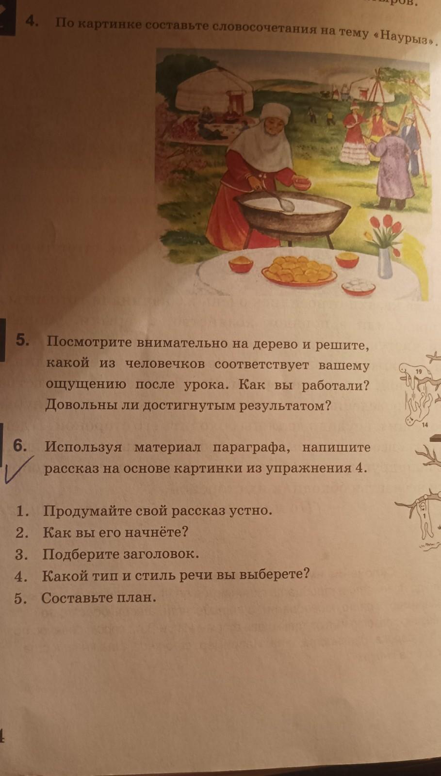 14 6. Используя материал параграфа, напишите рассказ на основе картинки из упражнения 4. А. 1. Продумайте свой рассказ устно. 2. Как вы его начнёте? 3. Подберите заголовок. 4. Какой тип и стиль речи вы выберете? 5. Составьте план.