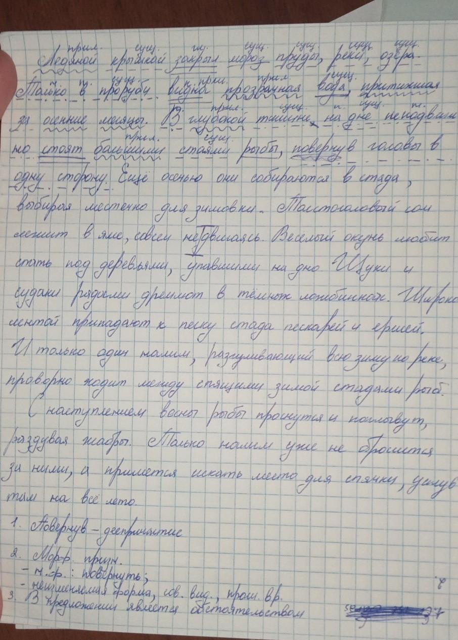 ПОМОГИТЕ ПЖЖ!! СРОЧНОО!! Текст нужно списать, вставляя пропущенные буквы и знаки препинания, затем выполнить синтаксический разбор 2-го и 3-го предложения и морфологический разбор любого деепричастия.