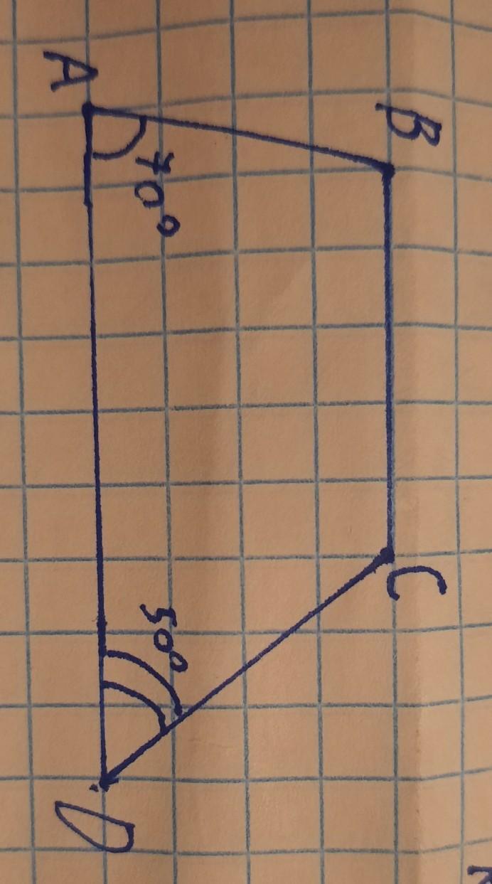 угол С = 180°-50°(угол D) = 130°