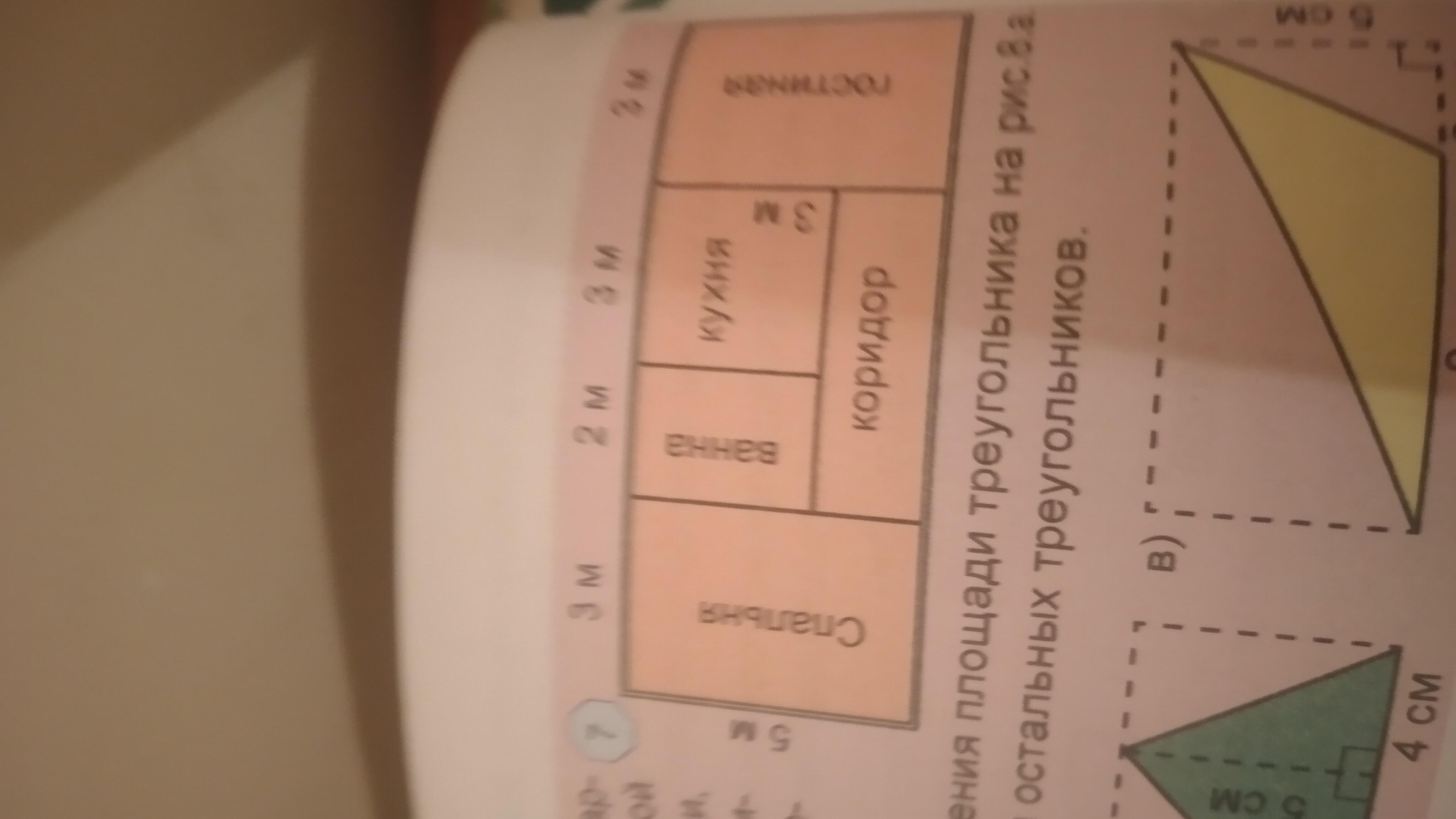 На рис.7 изображен план квартиры. Нацдите площадь каждой комнаты. Сложив эти площади, нацдите площадь всей квартиры. Как еще можно нацти площадь?