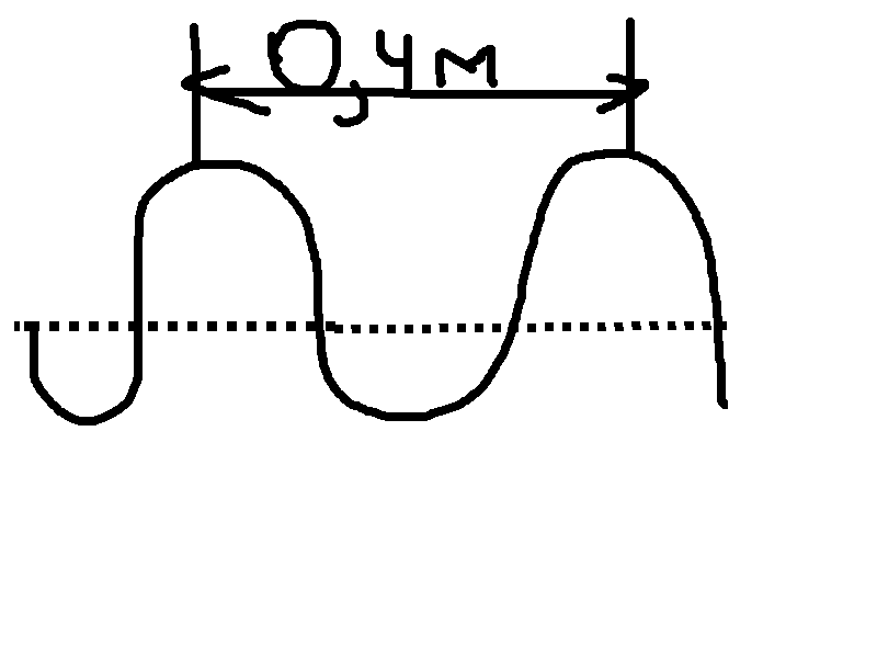 Учитель продемонстрировал опыт по распространению волны по длинному шнуру. В один из моментов времени форма шнура оказалась такой, как показано на рисунке. Скорость распространения колебания по шнуру равна 2м/с.