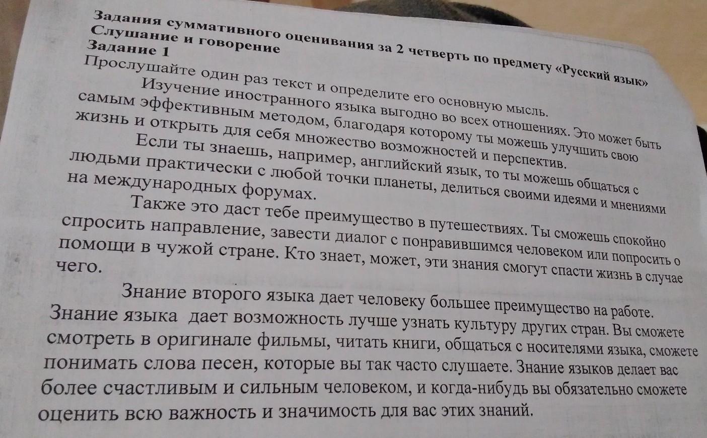 Задание 2 Используя информацию прослушанного текста и другую известную вам информацию, подготовьте аргументированный ответ на вопрос: «Насколько полезно знание иностранных языков?» Время на подготовку - 1 минута, время выступления – 1,5-2 минуты.