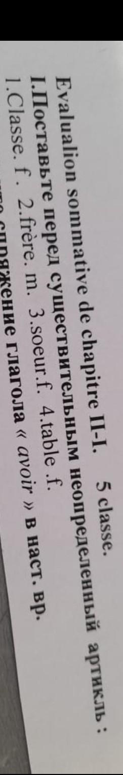 Evalualion sommative de chapitre II-I. 5 classe. . 1.Поставьте перед существительным неопределенный артикль : 1. Classe. f. 2.frére. m. 3.soeur.f. 4.table .f.