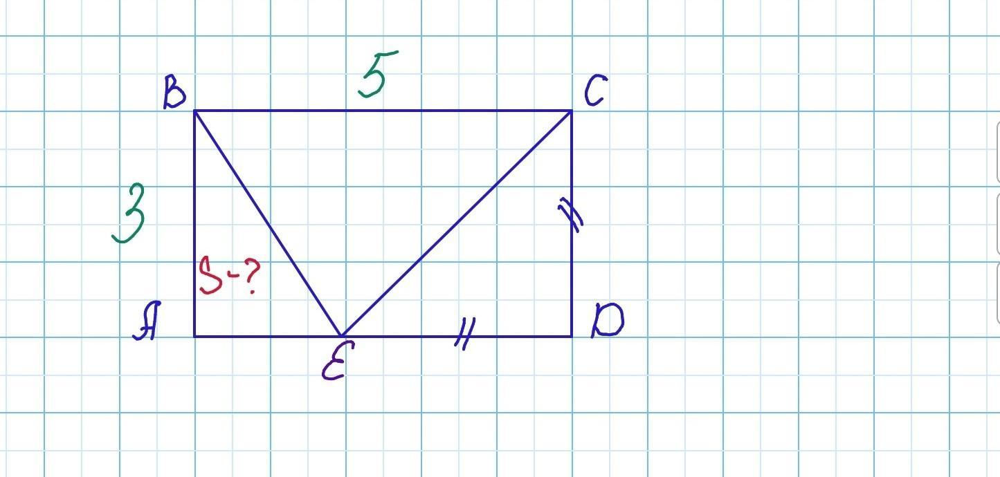В прямоугольнике ABCD AB = 3, BC = 5. на стороне AD отмечена точка E такая, что треугольник CDE - равнобедренный. Найдите площадь треугольника ABE.