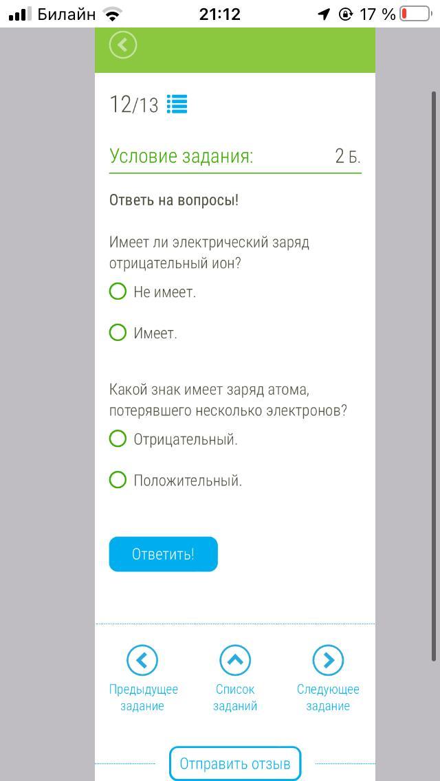Какой знак имеет заряд атома, потерявшего несколько электронов?:
