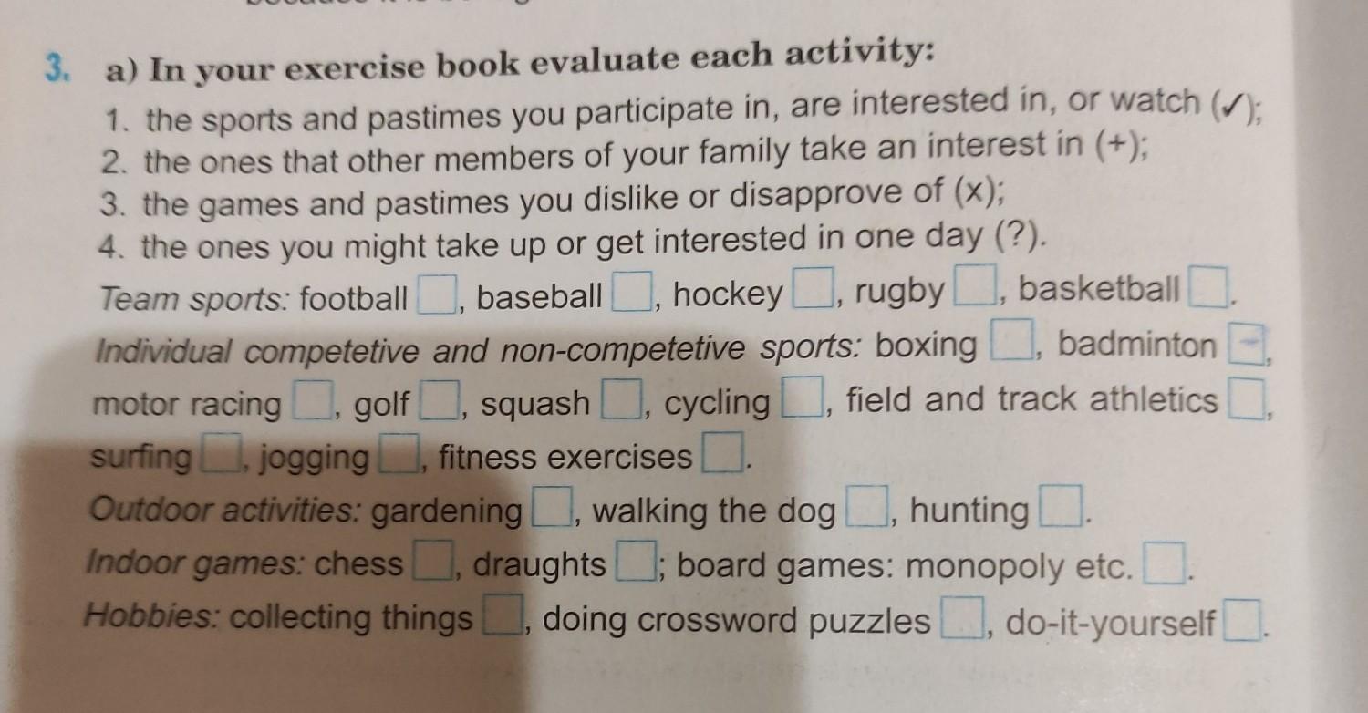 1. Спорт, которым ты интересуешься, занимаешься или смотришь (тогда ставь галочку)
