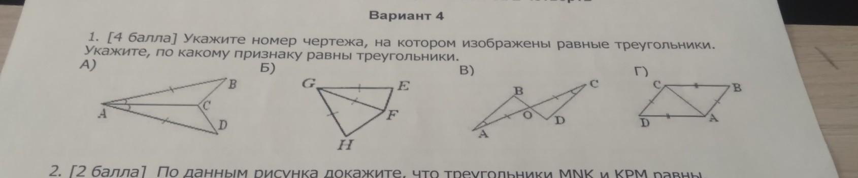 укажите номер чертежа на котором изображена равные треугольники