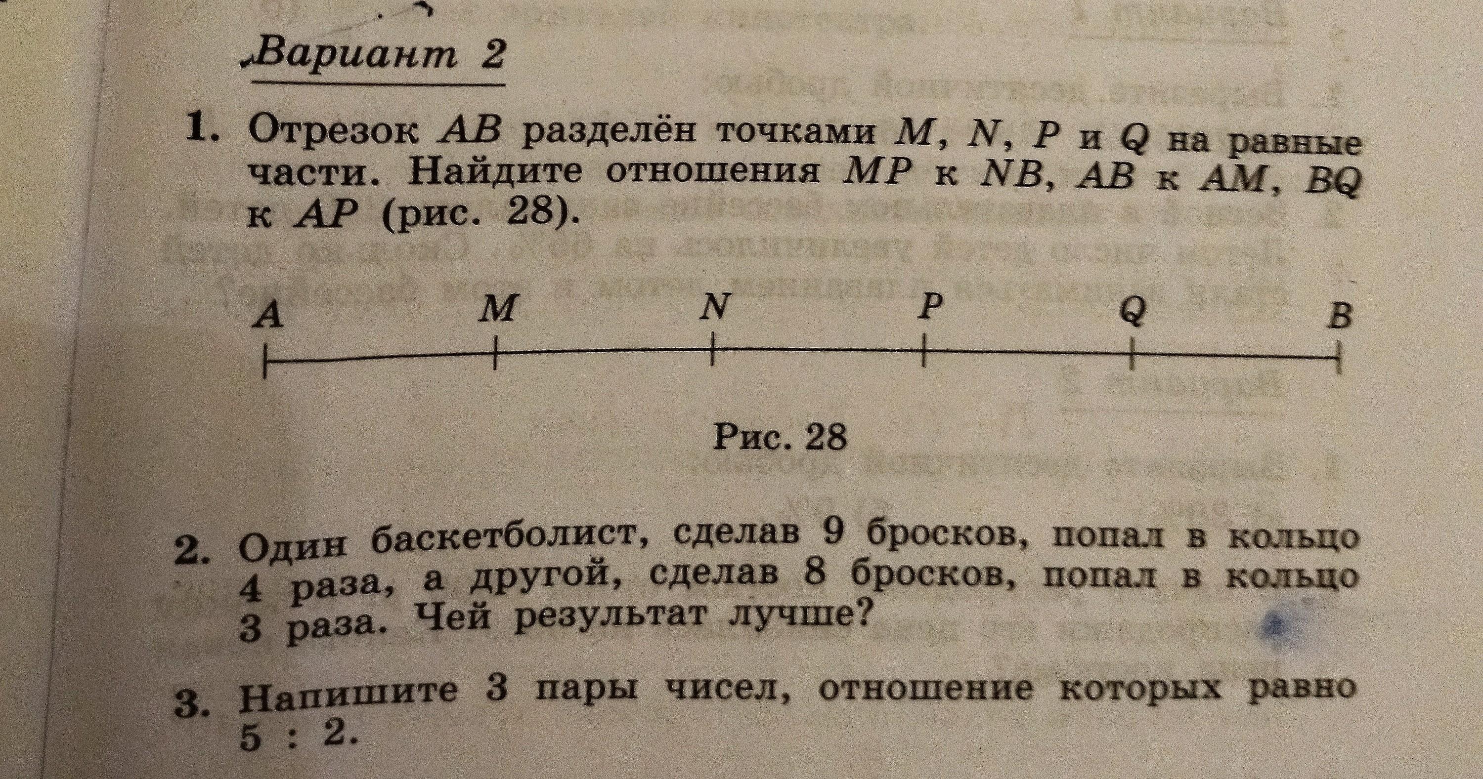 1. Обозначим каждый отрезок за x, тогда MP=2x, а NB=3x ⇒
