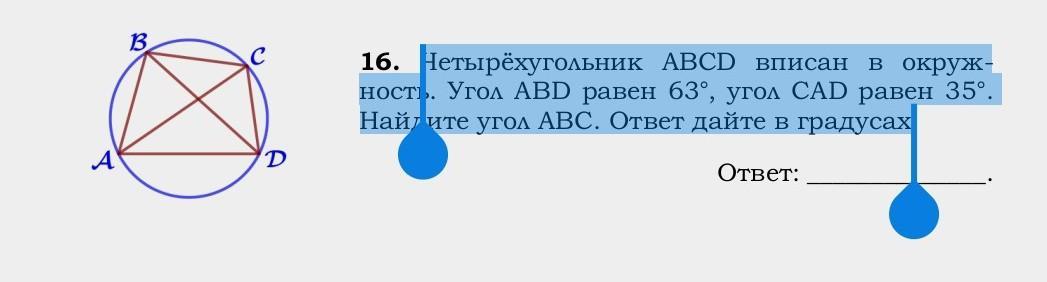 ность. Угол ABD равен 63°, угол CAD равен 35°.