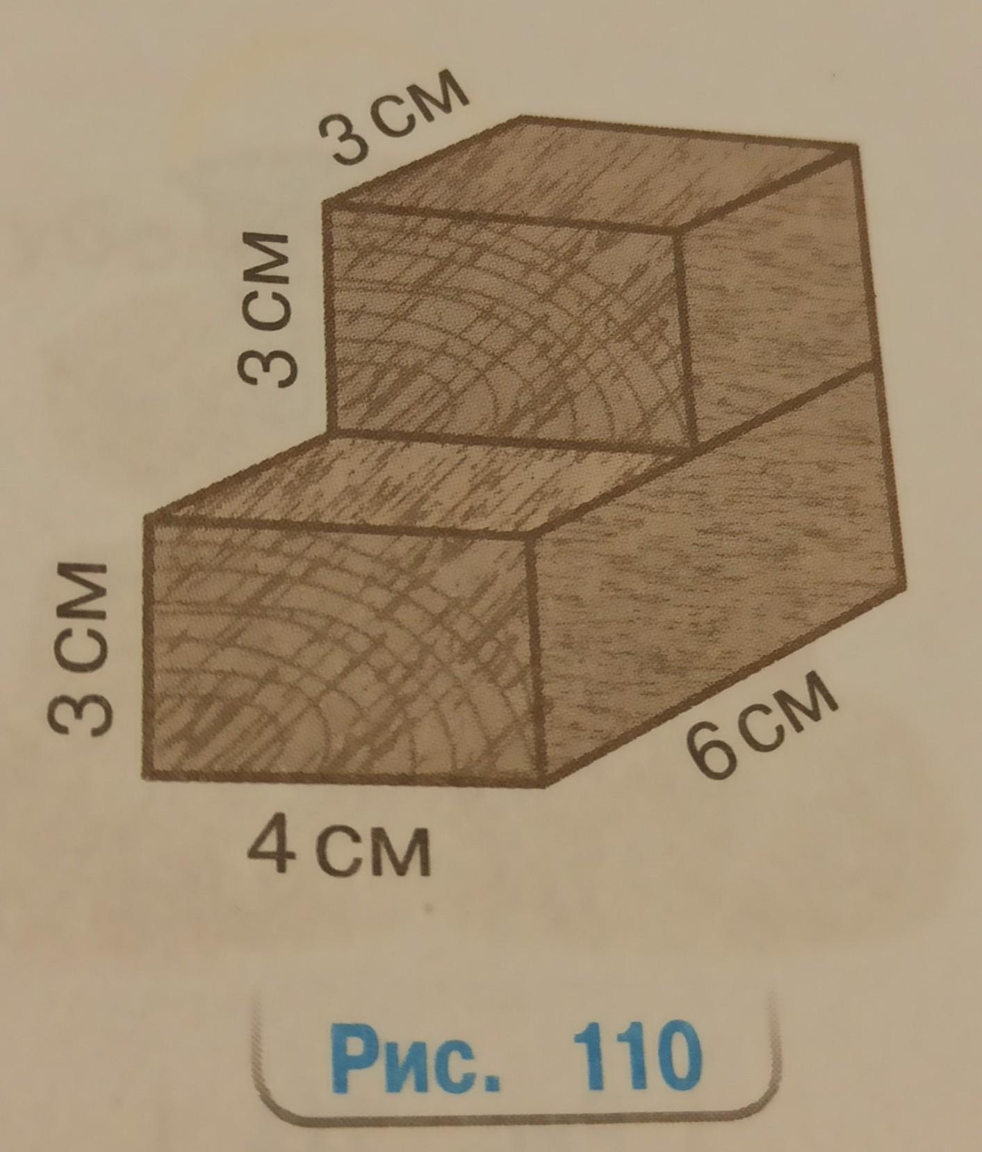 Найдите массу краски, необходимой для покраски деревянной детали (рис. 110), если расход краски на 1 см² поверхности равен 3 г.