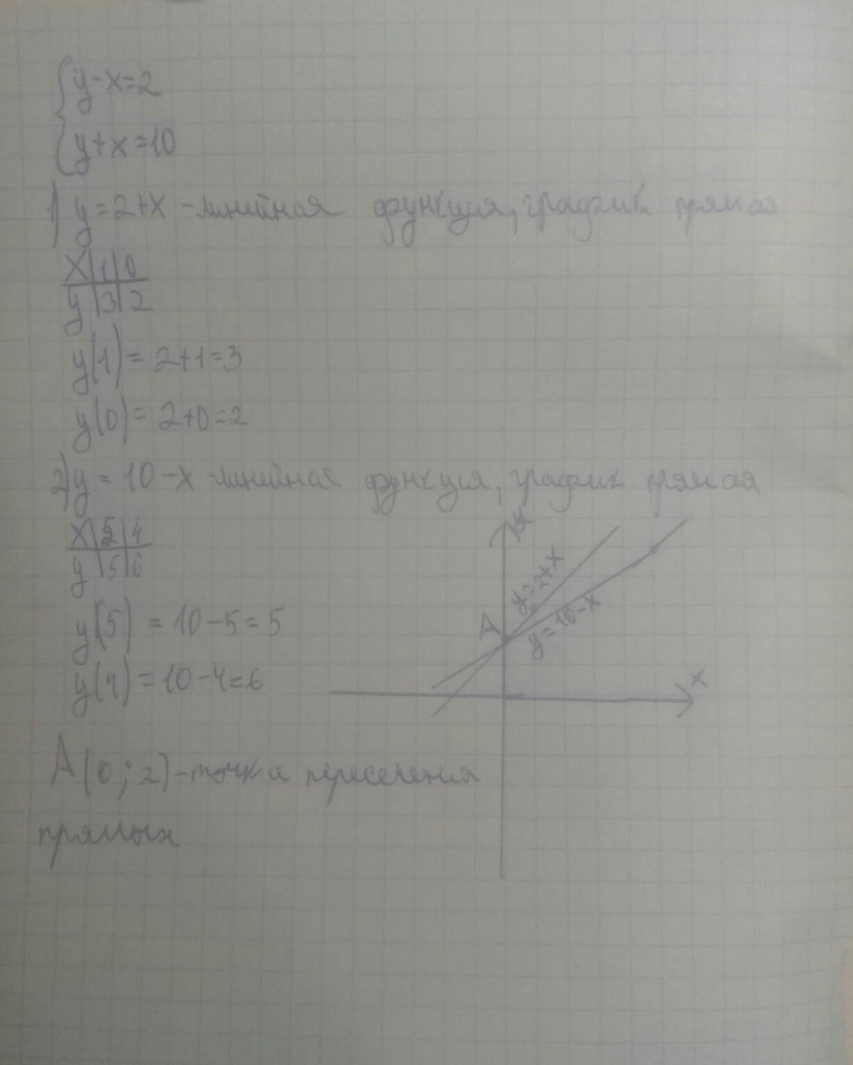 А (0;2) точка пересечения прямых