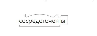 Часть речи — краткое причастие, части слова — со/средоточ/ен/ы , способ образования — префиксально-суффиксальный.