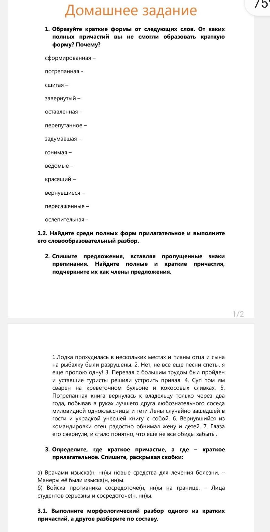 1. Лодка прохудилась в нескольких местах, и планы отца и сына на рыбалку были разрушены (сказуемое). 2. Нет, не все ещё песни спеты (сказуемое), я ещё пропою одну! 3. Перевал с большим трудом был пройден (сказуемое) и уставшие (определение) туристы решили устроить привал. 4. Суп том ям сварен (сказуемое) на креветочном бульоне и кокосовых сливках. 5. Потрепанная (определение) книга вернулась к владельцу только через два года, побывав в руках лучшего друга, любознательного соседа, миловидной одноклассницы и тети Лены, случайно зашедшей (определение) в гости и украдкой унёсшей (определение) книгу с собой. 6. Вернувшийся (определение) из командировки отец радостно обнимал жену и детей. 7. Глаза его сверкнули, и стало понятно, что ещё не все обиды забыты (сказуемое).