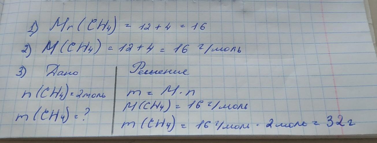 1. Вычислите относительную молекулярную массу метана CH4. 2. Определите молярную массу метана.