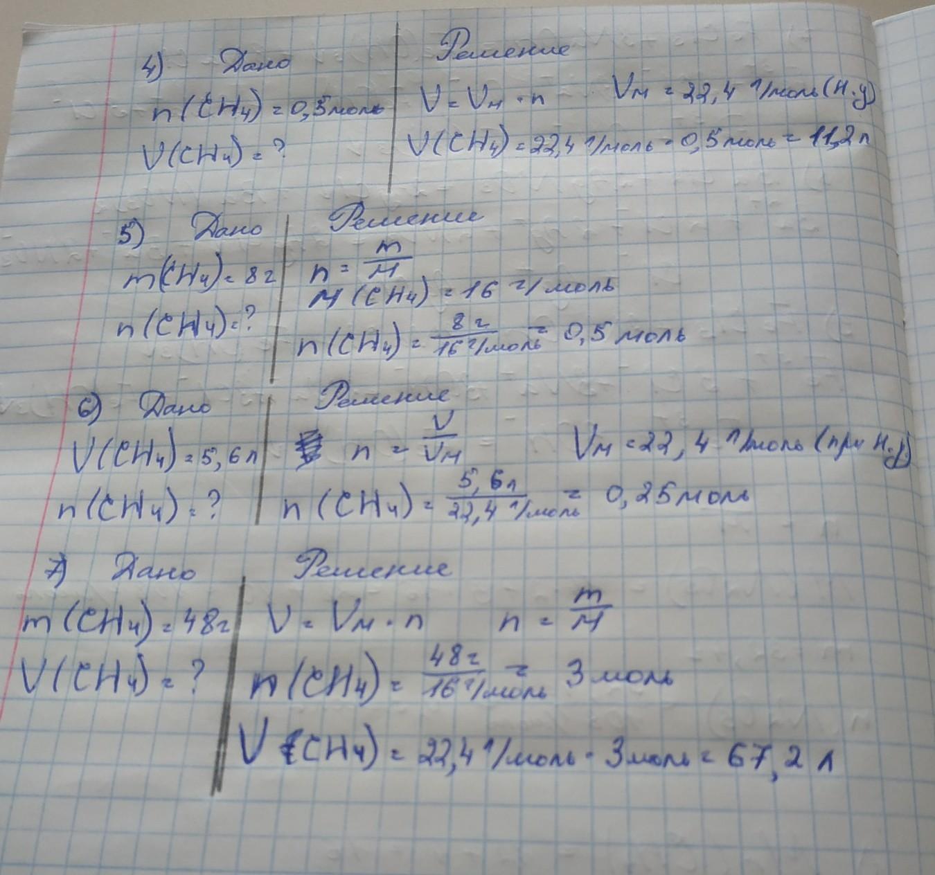 6. Объём метана при н.у. равен 5,6 л. Определите его количество вещества.