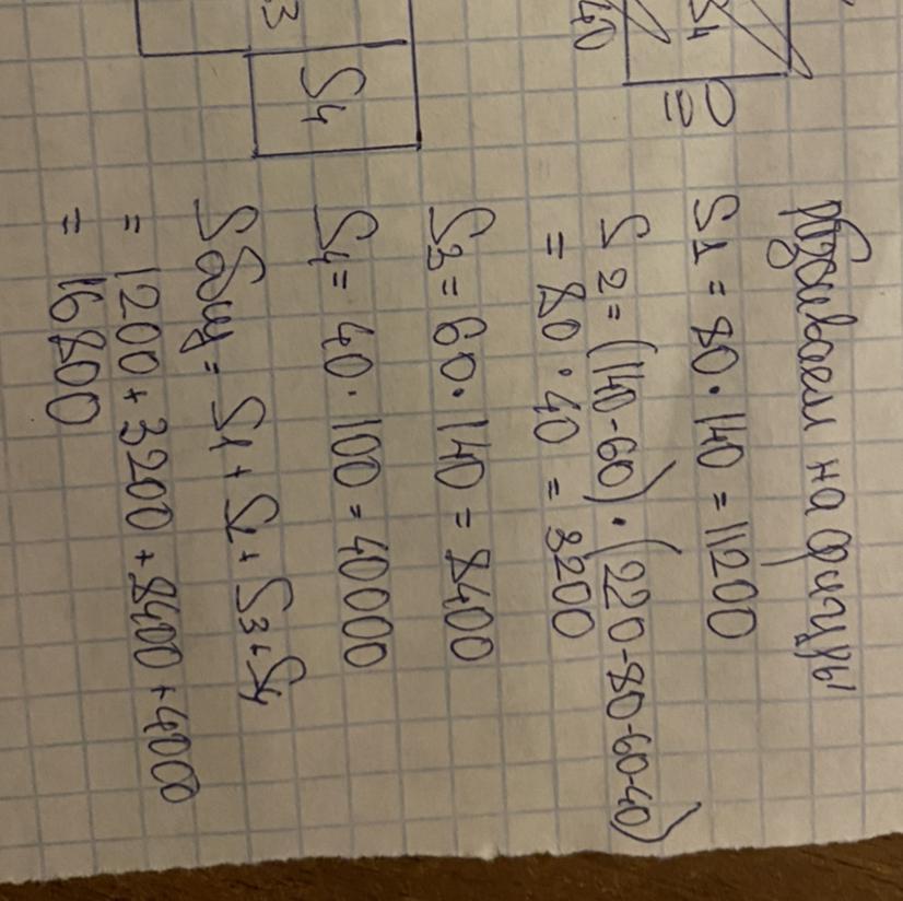 = 220*140-60*40 - 40*40 = 30800-2400-1600 = 26800