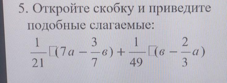 5. Откройте скобку и приведите подобные слагаемые: 1 3 1 2 - (7а 6) + - Цв — — а) 21 7 49 3