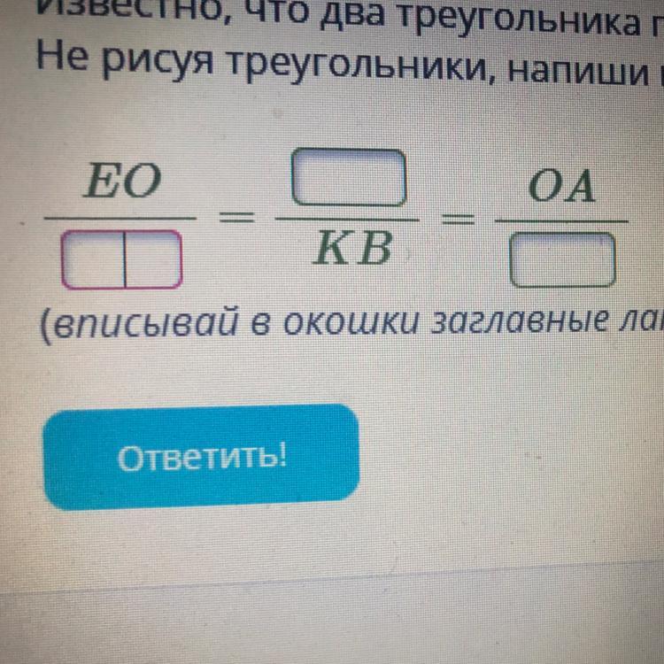 Известно, что два треугольника подобны: треугольник ЕОА трЕугольник КСВ,