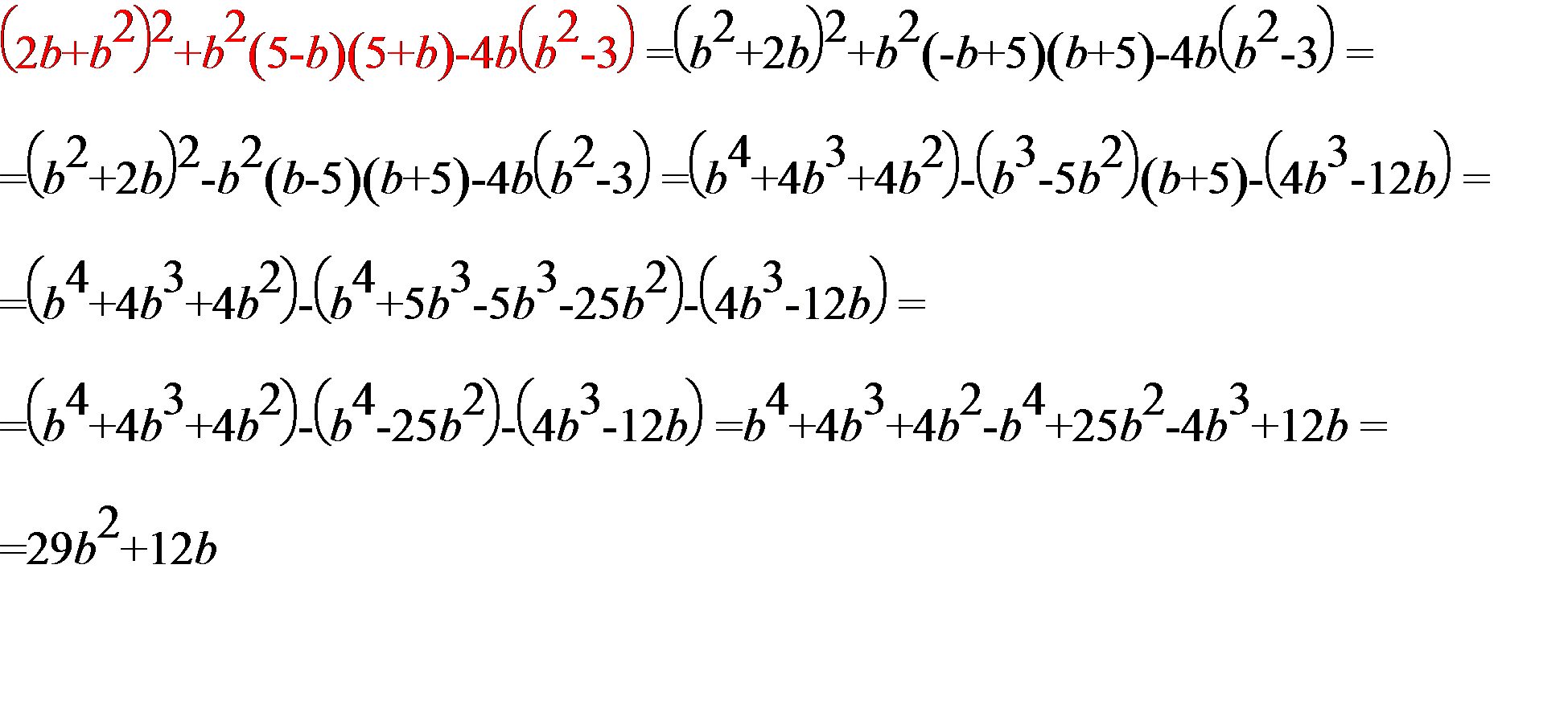 4В в квадрате + 4В в 3 степени + В в 4 степени + 25В в квадрате -В в 4 степени -4В в 3 степени+ 12В = 29В в квадрате +12В
