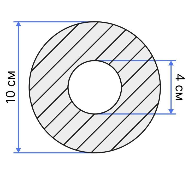 площадь заштрихованной фигуры равна площади большого круга минус площадь маленького.