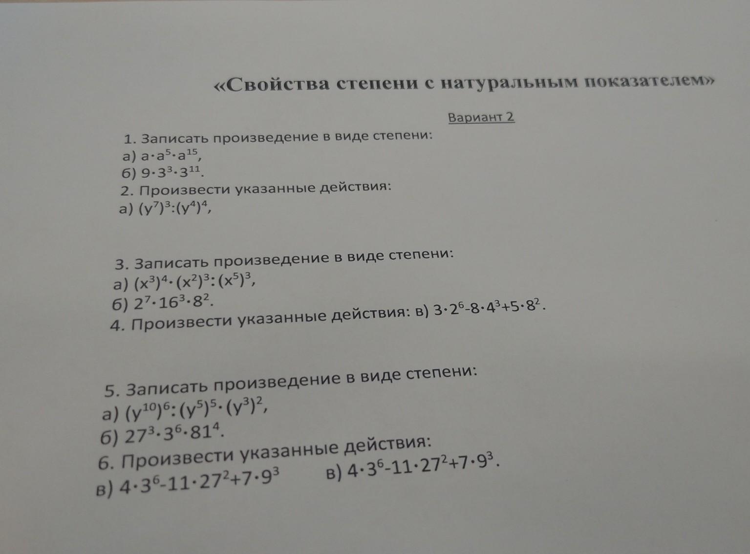 (y^10)^6÷(y^5)^5×(y³)² = y^60 ÷ y^25 × y^6 = y^41 ; тут надеюсь всё понятно.