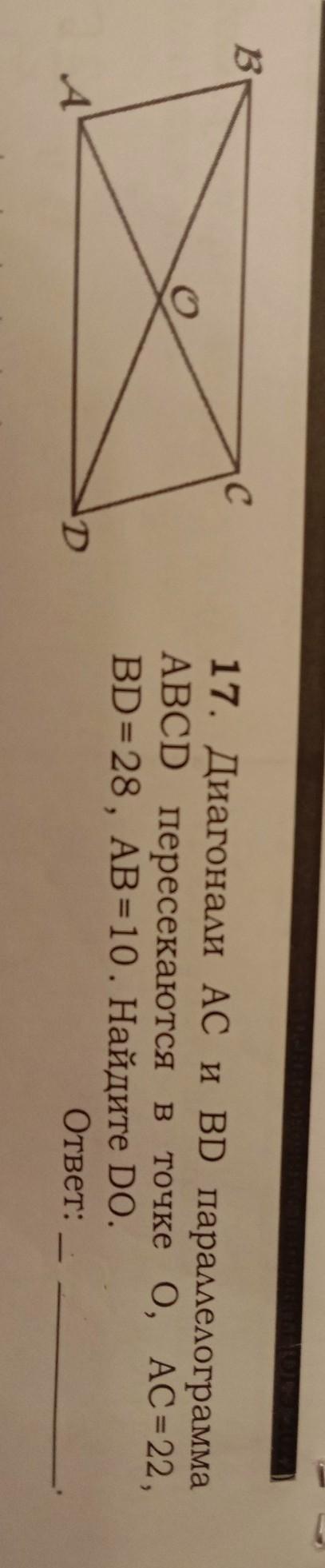 DO = 28/2 = 14. диагональ АС делит BD по полам