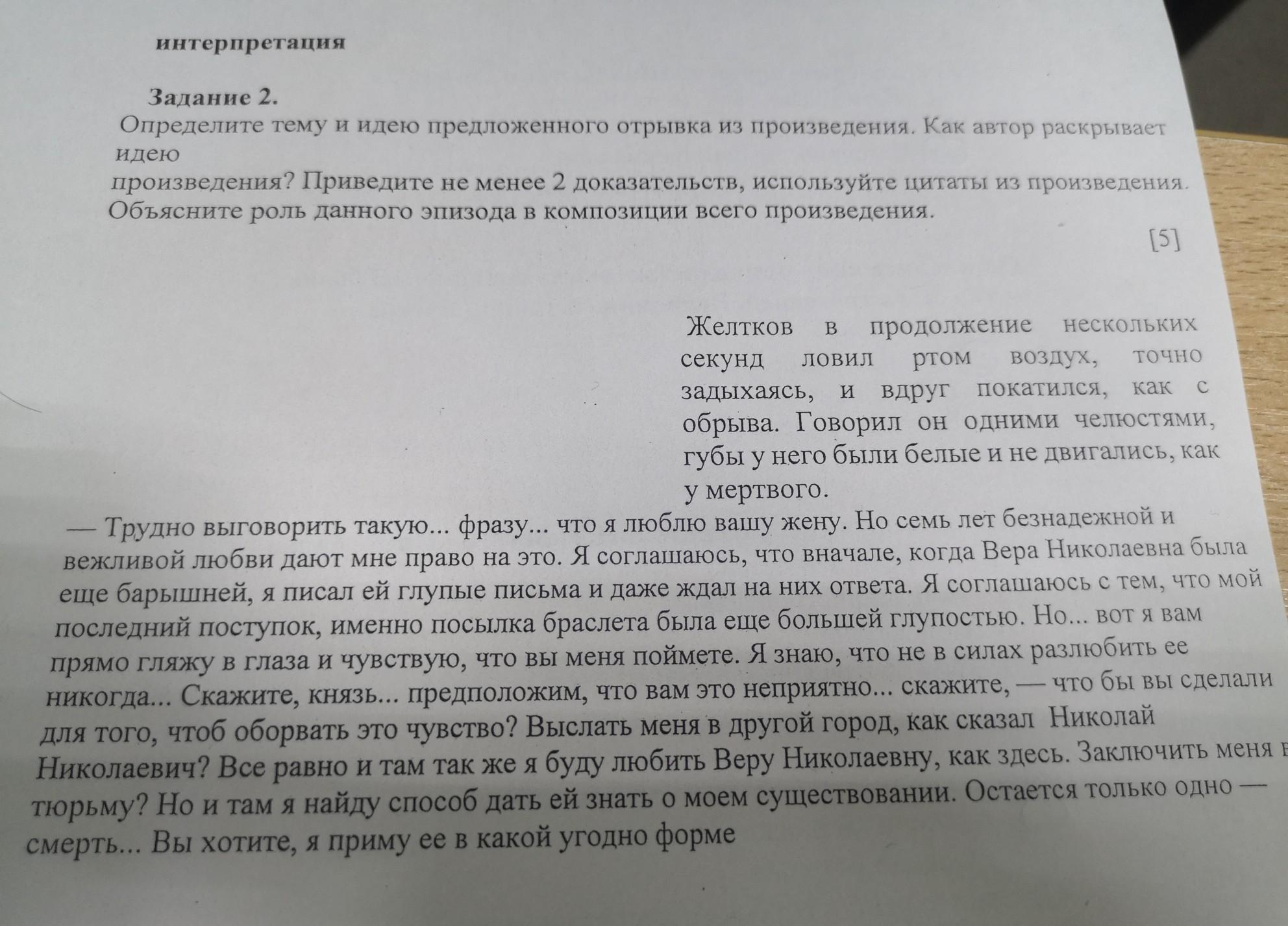Задание 2. Определите тему и идею предложенного отрывка из произведения. Как автор раскрывает Идею произведения? Приведите не менее 2 доказательств, используйте цитаты из произведения. Объясните роль данного эпизода в композиции всего произведения.