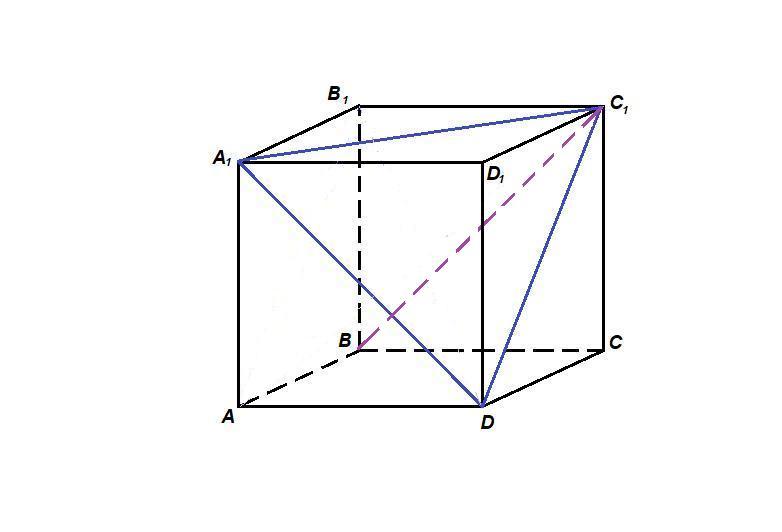 Достроим треугольник DA₁C₁. Этот треугольник равносторонний, так как его стороны - диагонали равных квадратов. Значит,