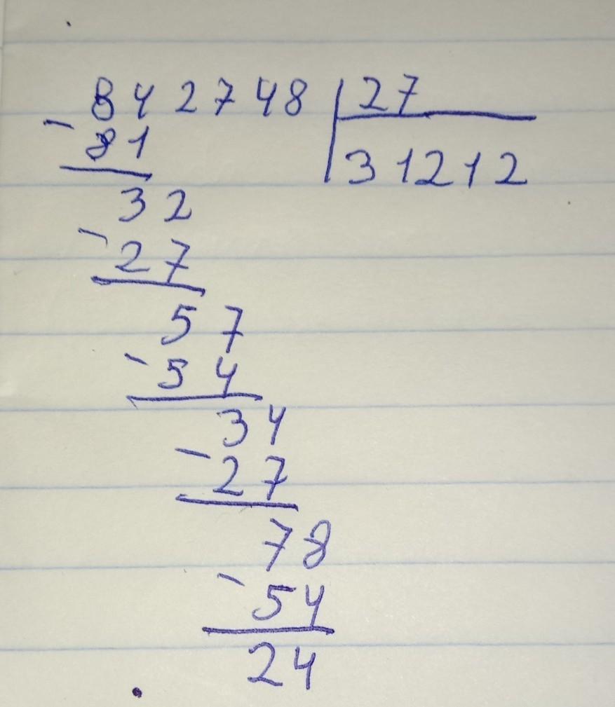 842748:27=31212 (с остатком 24)