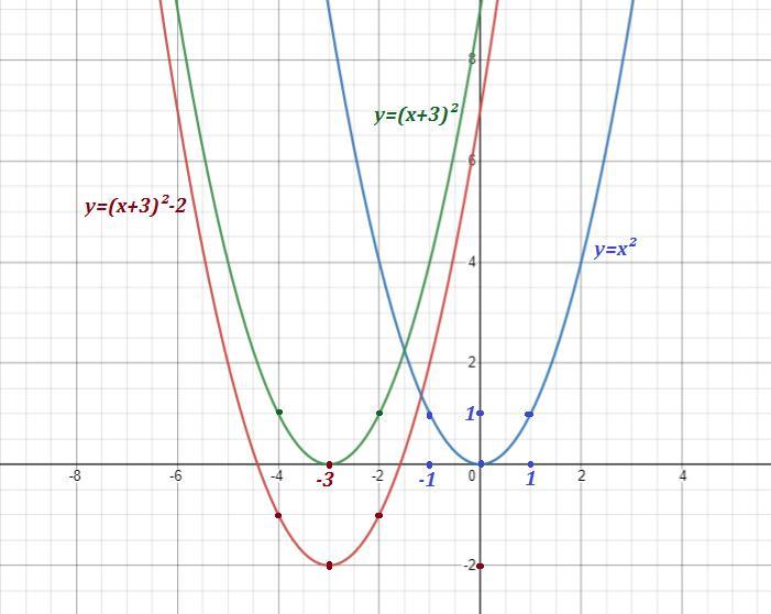 2) Сдвигаем её на 3 единицы влево вдоль оси ОХ, получаем график параболы .