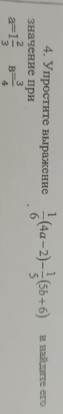 1/6 ·(4a-2) -1/5 ·(5b+6)=(2a)/3 -1/3 -b -1 1/5=(2a)/3 -b -5/15 -1 3/15=(2a)/3 -b -1 8/15=2/3 ·5/3 -3/4 -1 8/15=1 1/9 -45/60 -1 32/60=1 1/9 -2 17/60=1 20/180 -2 51/180=-1 31/180