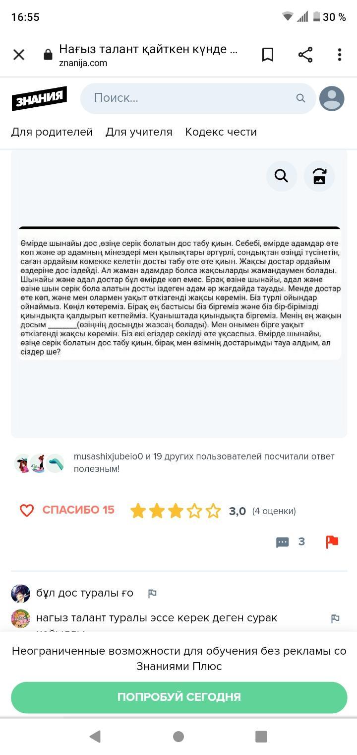 Қазақ тілі «Нағыз талант қайткен күнде де жарыққа шығады, танымал болады». «Жоқ, талант та керек, бірақ оған қолдау мен таныс керек» дейтін пікірлер бар. Ал Сіз қалай ойлайсыз? Ойыңызды жинақтап, эссе жазыңыз.