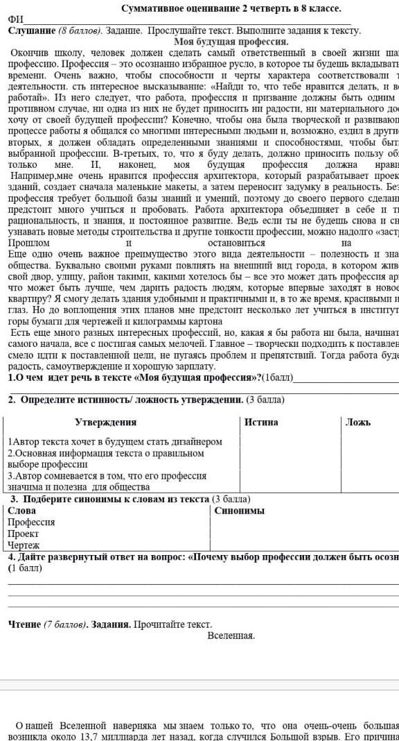 1. Текст идет о том что каждая профессия важная и полезная, и автор говорит о своей будущей профессии