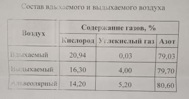 С) почему процентно, содержание кислорода в выдыхаемом воздухе уменьшается?