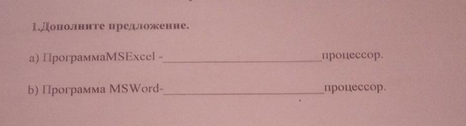 1.Дополните предложение. а) ПрограммаMSExcel - процессор. b) Программа MS Word- процессор.