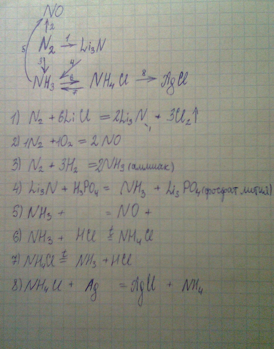 N2-Li3N, N2 - NH3,N2 - NO , Li3N - NH3 , NH3 - NO , NH3 - NH4Cl , NH4Cl - NH3 , NH4Cl - AGCl