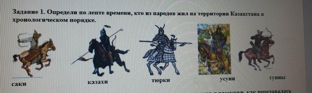 Задание 1. Определи по ленте времени, кто из народов жил на территории Казахстана в хронологическом порядке.